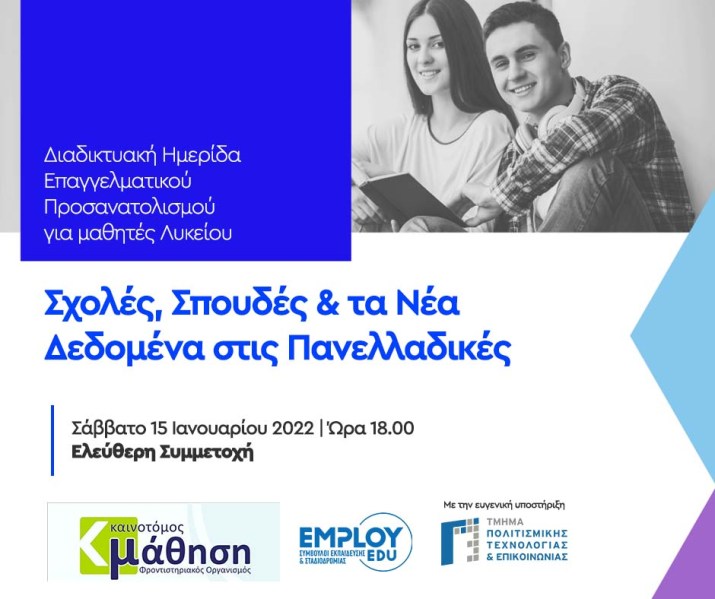 Σας καλούμε στο χώρο του φροντιστηρίου μας, στο πλαίσιο του επαγγελματικού προσανατολισμού των μαθητών μας, με ομιλητές τους: