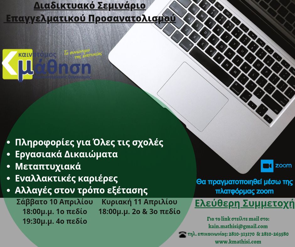Σας καλούμε στο χώρο του φροντιστηρίου μας, στο πλαίσιο του επαγγελματικού προσανατολισμού των μαθητών, με ομιλητές τους: