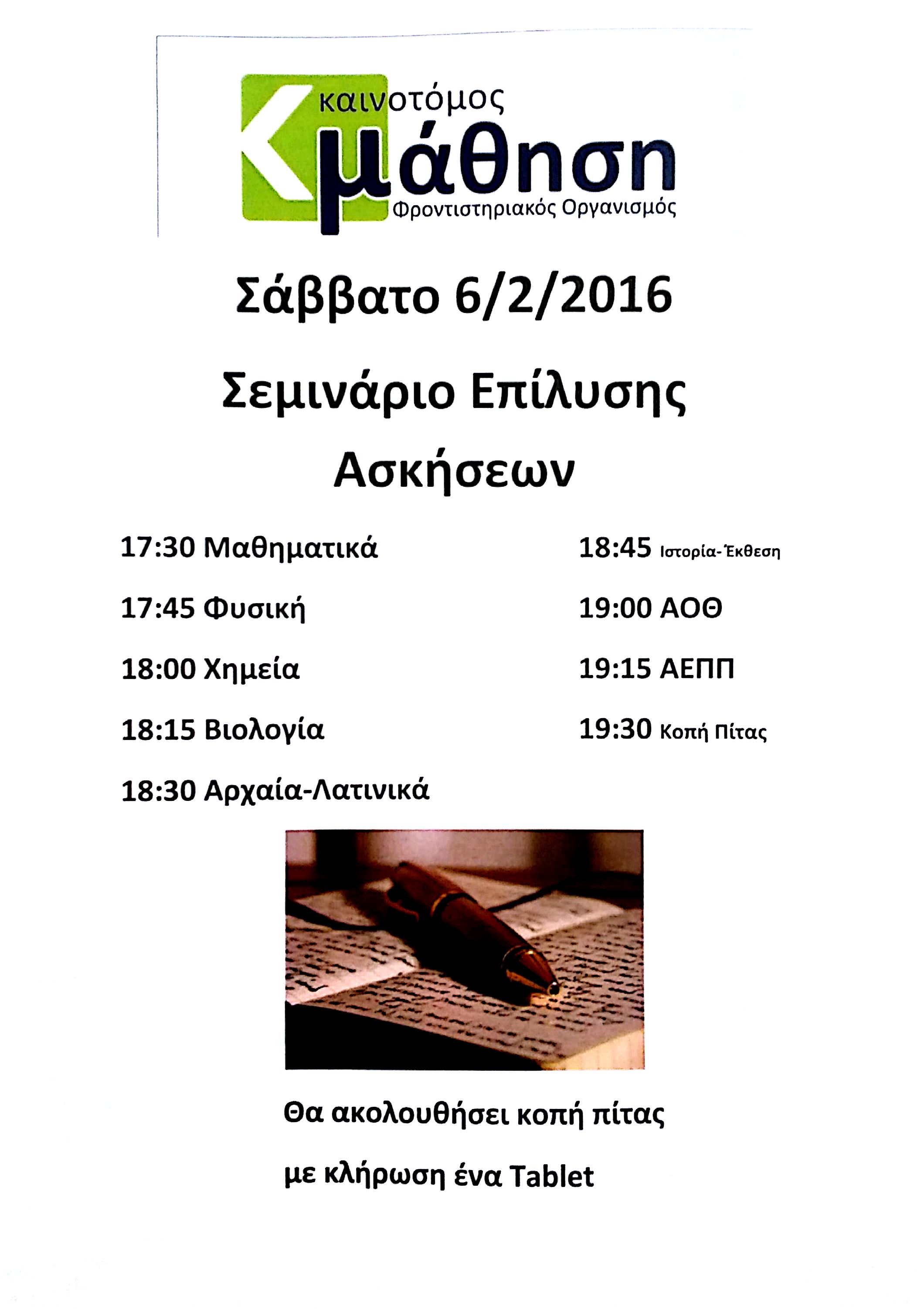 Πρόγραμμα διαγωνισμάτων Απριλίου – Μαίου