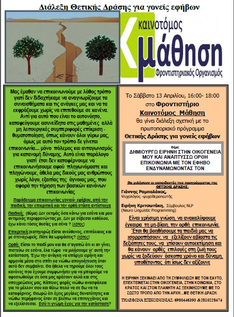 Διάλεξη Θετικής Δράσης για γονείς Εφήβων